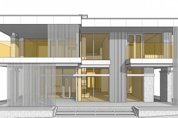 Двухэтажный жилой дом для проживания одной семьи запроектирован в современном минималистическом стиле.