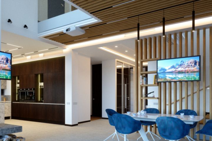 Интерьер кухни-столовой в минималистическом стиле.