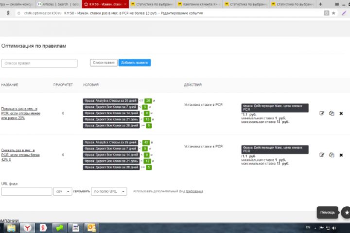 На картинке представлено правило в сервисе автоматизации рекламы, которое используется в случае, когда конверсий еще мало. Снижаем цену, если пользователи сразу уходят с сайта и повышаем, если интересуются содержимым.