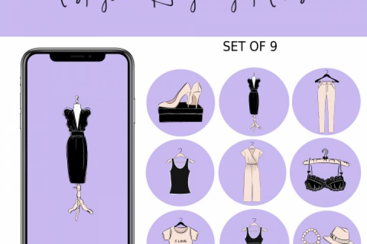 Пакет из 9 иконок и 9 превью изображений для Инстаграм аккаунта магазина одежды