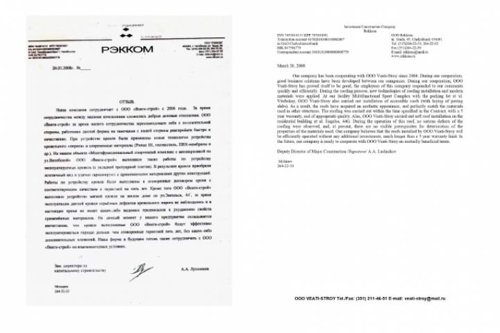 Перевод благодарственных писем и отзывов заказчиков, полученных организацией.
