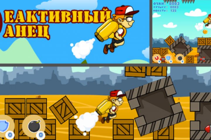 Игра в стиле джетпак. У вас реактивный ранец, с помощью которого предстоит летать над городом, собирать монеты, уничтожать врагов, преодолевать различные препятствия и постараться не попасть под электрический разряд. В игре у вас будут три вида оружий: