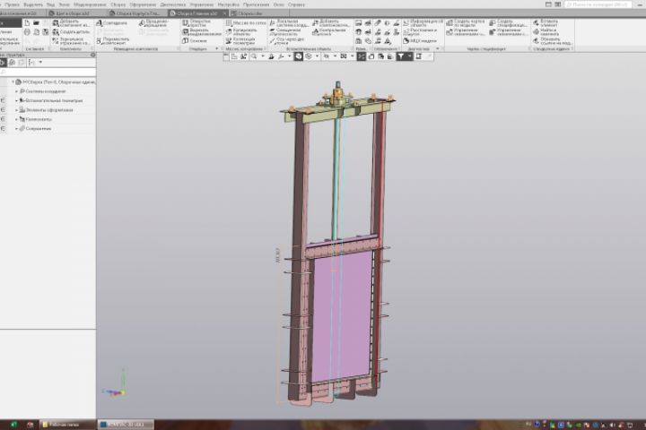 Проектирование запорный арматуры из листового метала в Компас-3D. В сборке участвуют 36 деталей.
