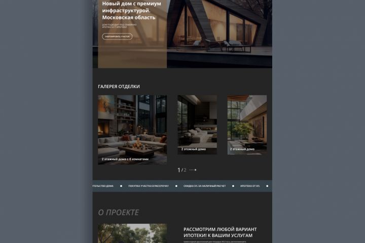Нужно было создать дизайн сайта визитки. для загородного дома, который подходит под семейную ипотеку, и он полностью под ключ.