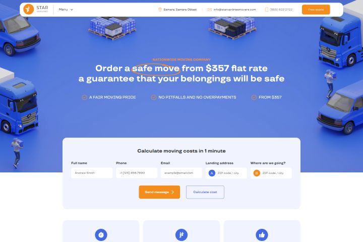 Позже, наши программисты создают функционал, соответствующий специфическим потребностям логистической компании, включая систему информационных гайдов по переездам внутри США, онлайн-калькуляторы стоимости доставки и многое другое.
