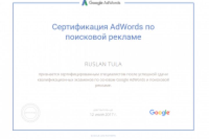 Сертификат Adwords по поисковой рекламе