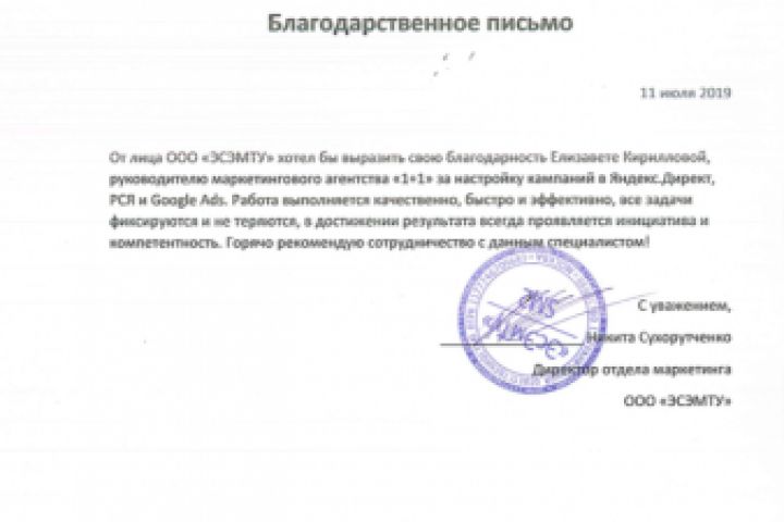Отзыв о работе с рекламой от ЭСЭМТУ