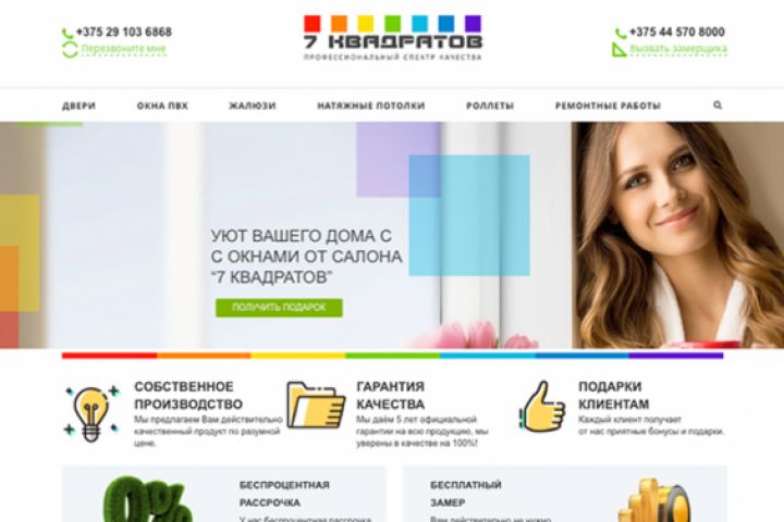 На сайте представлен каталог дверей, окон, потолков и роллетов с возможностью онлайн-покупки и фильтрацией по параметрам.