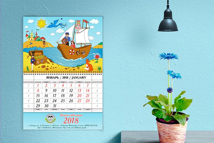 В иллюстрации к календарю зашифрованы 12 книг-юбиляров 2018 года. Иллюстрация выполнена в векторе.