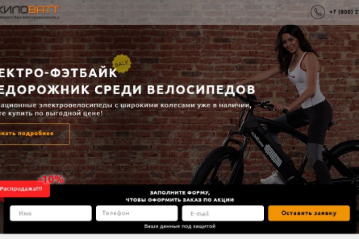 Landing page для целевых продаж электровелосипедов fate-bike.