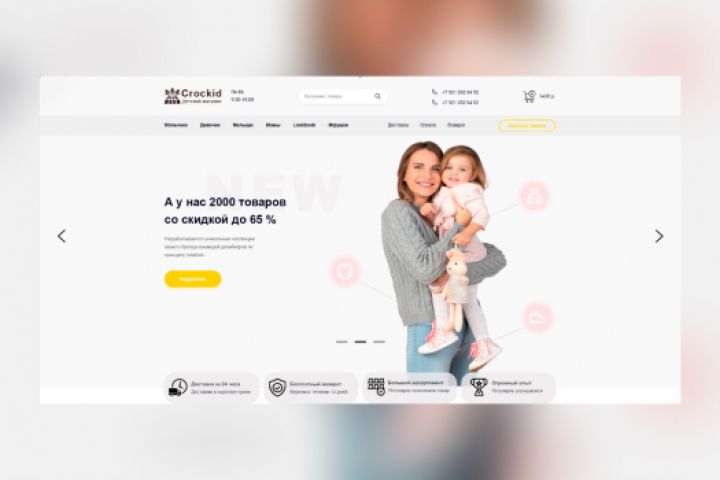 Выбрана не совсем детская гамма цветов так как магазин ориентирован