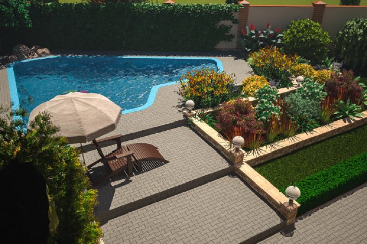 Эскизный проект ландшафта. Участок 600м. кв. Коттеджный стиль.