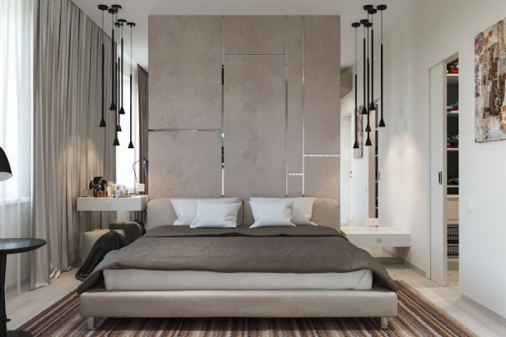 Дизайн спальни в современном стиле. Одноэтажный дом 170 м. кв.