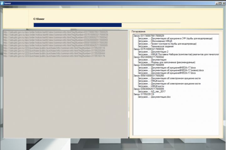 Все документы сохраняет в подпапку - имя подпапки по номеру закупки -в выбранную в проге папку.