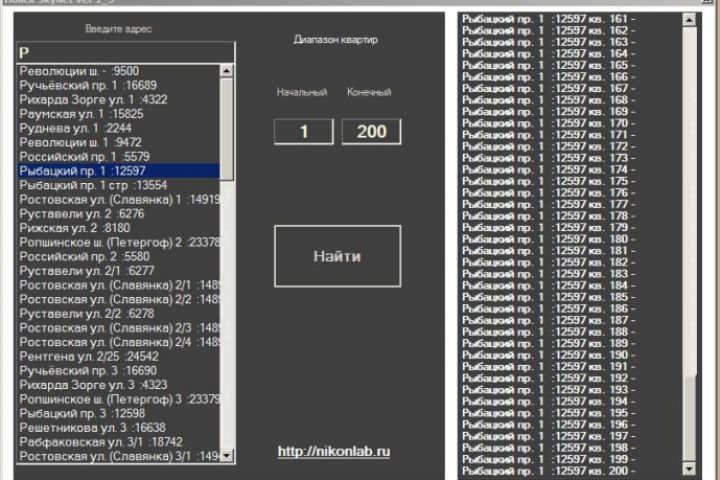 Выбор - адреса - диапазона номеров квартир - API запрос - получение информации о подключении