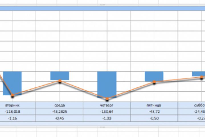 1. Среднее изменение по дням недели (с понедельника по воскресенье)