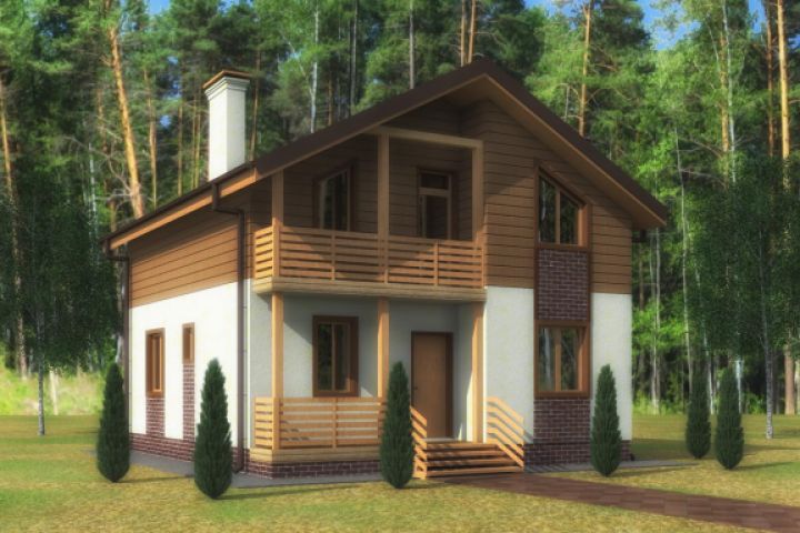 Отделка стен фасада: Штукатурка, деревянная вагонка и обшивка сайдингом.