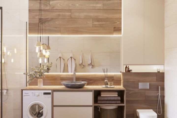 Дизайн интерьера ванной комнаты выполнен в стиле Лофт