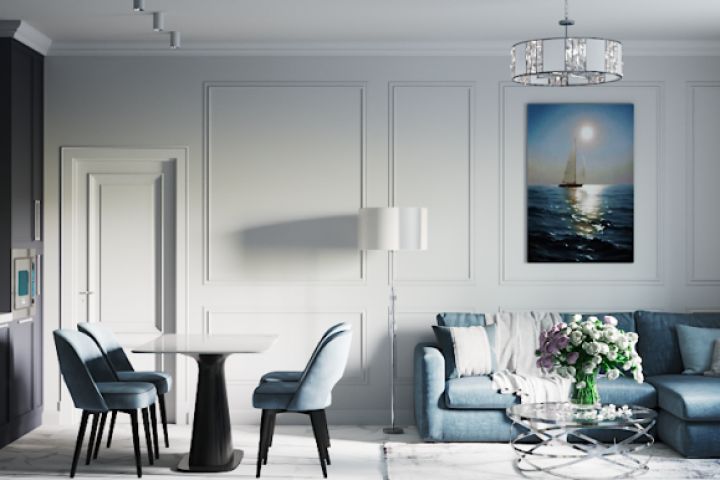 Кухня-гостиная в неоклассическом стиле из 4-х человек.