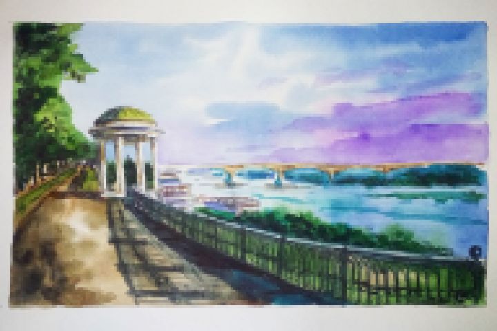 Городской пейзаж, акварель.