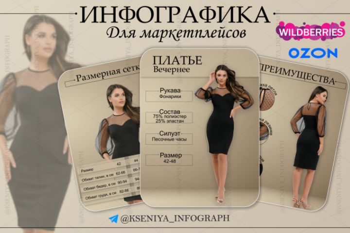 Создание дизайна карточки для оформления женской одежды цена 1 карточки 200 рублей