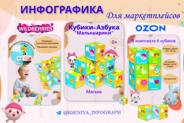 Создание дизайна карточек детских товаров - 300 рублей