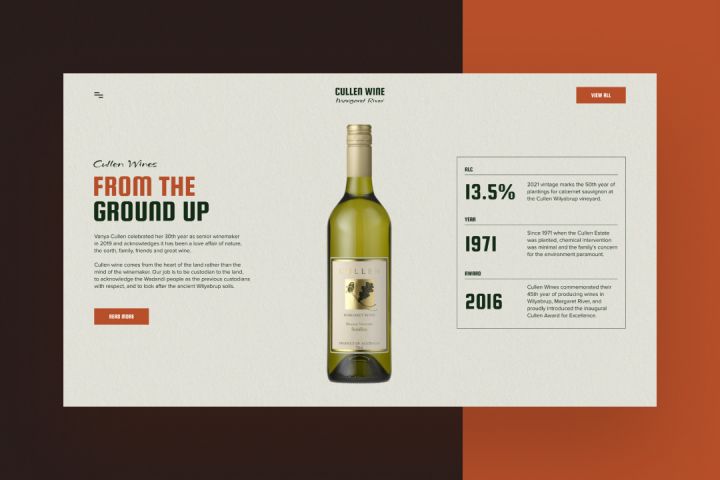Палитра передаёт идентичность Cullen Wine: экологичность и традиции.