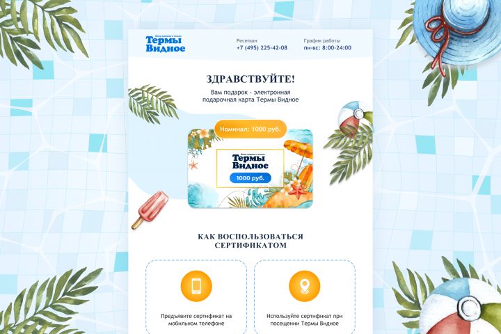 - используется компанией как универсальный корпоративный шаблон для регулярной рассылки подарочных карт клиентам.
