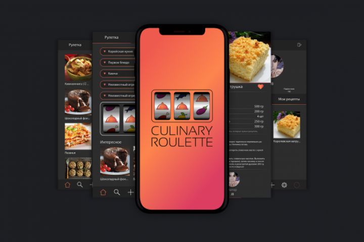 Приложение по подбору рецептов. Можно задать три или менее нужных ингредиента, из которых пользователь хочет приготовить блюдо, выбрать кухню и вид блюда (первое, второе, десерт, салат и т.д.), а затем запустить рулентку и она предложит рецепт рандомного блюда с данными ингридиентами. Так же в нем можно просто найти рецепты по душе. Учебное задание на 4 курсе университета.