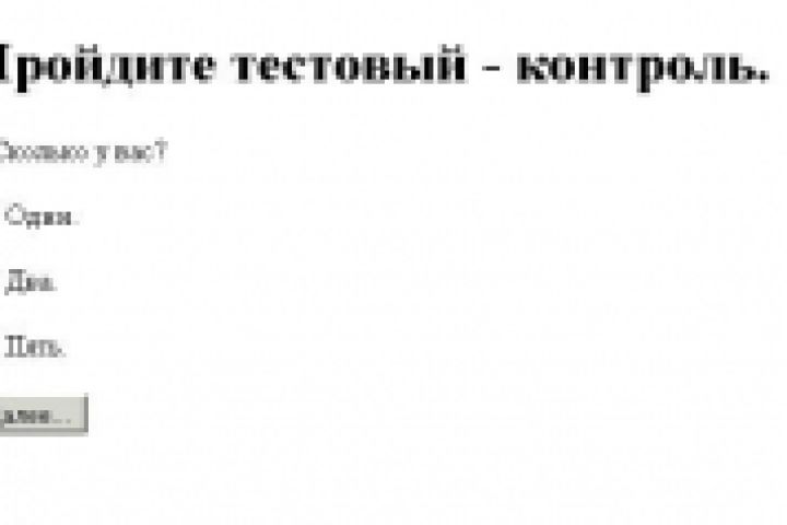 Простой тест. Работает на JS. Вопросы в самом скрипте. Выбор вопросов и вариантов ответ случайный. Подсчет результатов на сервере через AJAX запрос.