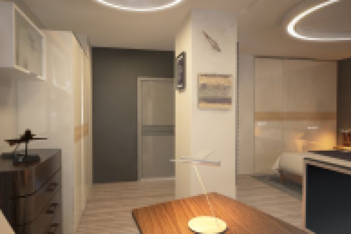 В этой квартире совмещены такие комнаты, как кухня и гостиная, спальня и рабочий кабинет. Квартира для холостяка и интерьер соответствующий, визуализации в таком стиле делаются довольно таки быстро. В срок 2-3 дня мы уложились, чтоб создать такую визуализацию.