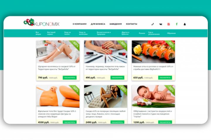 Портал для купонного агрегатора Kuponomix