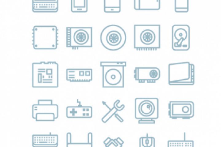 Ключевые слова: иконки, вектор, vector, SVG, pixel, пиксель, пиксельный, линейный, плоский, дизайн, сайт, навигация, компьютер, техника, периферия, комплектующие
