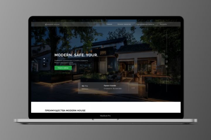 Дизайн корпоративного сайта для компании, занимающейся строительством современных домов. Заказчик хотел видеть современный, минималистичный дизайн, который бы создавал ощущение престижа, надежности, стабильности, изысканности. Полную работу можно посмотреть, перейдя по прикрепленной ссылке.
