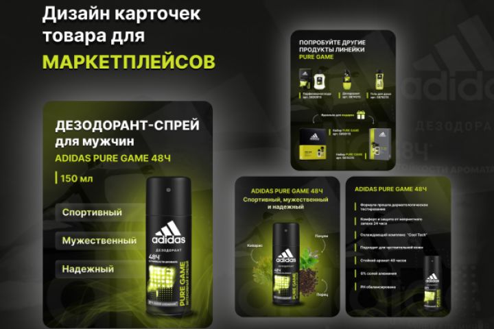 Работа выполнена частично по Техническому Заданию, тк информации было не достаточно для полной карточки товара, для того чтобы привлечь внимание потенциального клиента. Нашла самостоятельно недостающую информацию о товаре и оформила карусель карточек для товара.