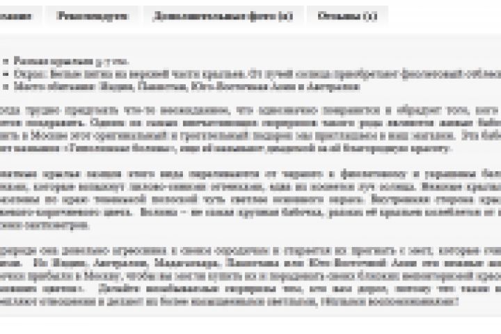 Сео-оптимизированный текст для магазина, продающего живых бабочек