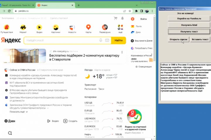 Внешняя панель управления штатным браузером.