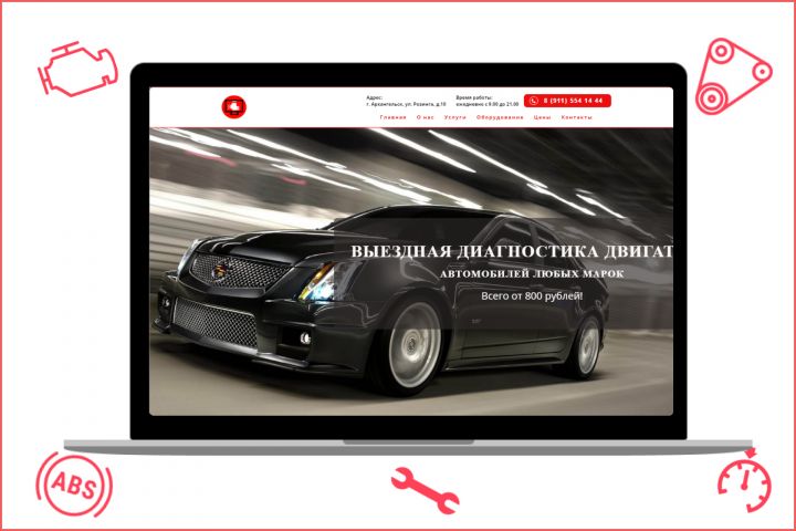 Многостраничный сайт для СТО, занимающейся компьютерной диагностикой автомобилей. Главная страница в виде лендинга, с переходом на другие страницы сайта по услугам и оборудованию, с подробным описанием.