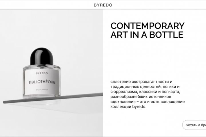 выполнено макет лонгрида для фирмы духов "Byredo"