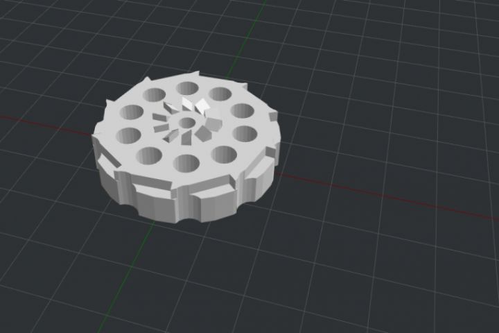 барабан пневматического револьвера, выполнен по размерам заказчика, подогнан под реальные размеры, напечатан на 3д-принтере, испытан )