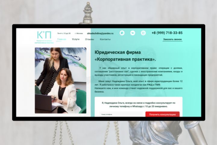 Одностраничный сайт для юридической компании "Корпоративная практика"