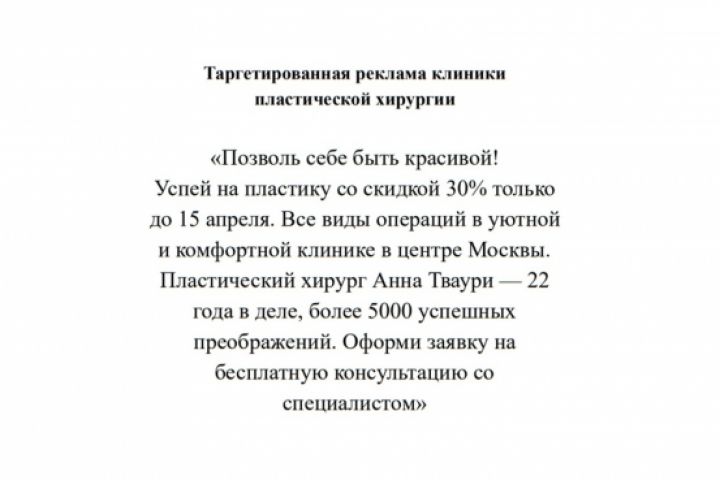 ТАРГЕТИРОВАННАЯ РЕКЛАМА (КЛИНИКА ПЛАСТИЧЕСКОЙ ХИРУРГИИ)