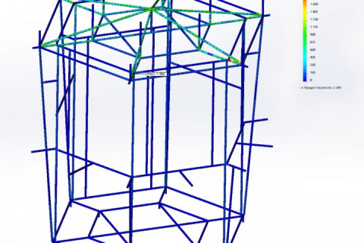 Расчет структурных нагрузок обязательное условие при проектировании любого строения даже такого небольшого как киоск в форме стакана. Каркас специально выполнен прямыми сегментами для удешевления производства и получения возможности заложить утеплитель в стены. #solidworks #engineering