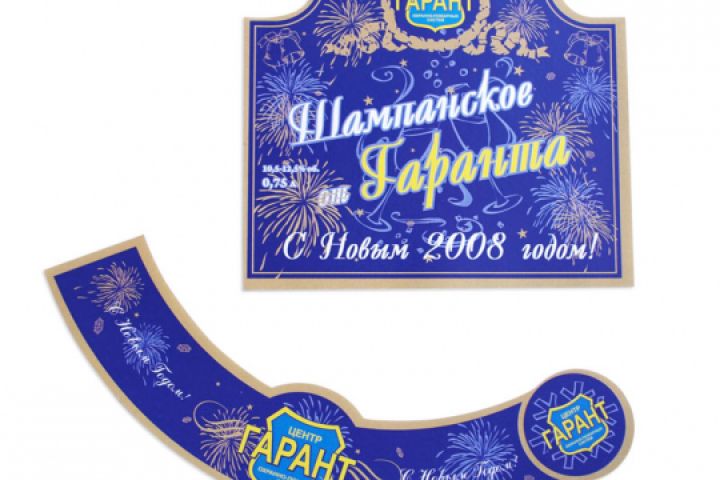 Этикетка, кольеретка и контрэтикетка на бутылку, фирменное шампанское "Гарант"
