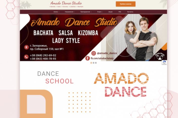 Для школы латиноамериканских танцев требовался новый сайт. В итоге был разработан новый дизайн-макет, с последующей версткой и интеграции на CMS WordPress. Я старался показать легкость, чистоту, простоту в использовании, а так-же добавить изюминку и немного креативности на сайт. Целью было сделать сайт более удобным для посетителя, а так-же популяризировать школу в городе.