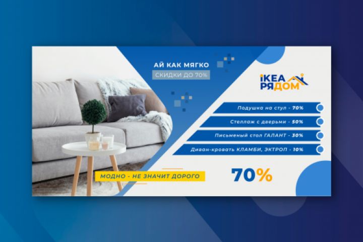 Разработка третьего баннера для сайта IKEA Икеатагил. Заказчик предоставил техзадание, где обозначил все свои предпочтения, в соответствии с чем началась разработка баннера.