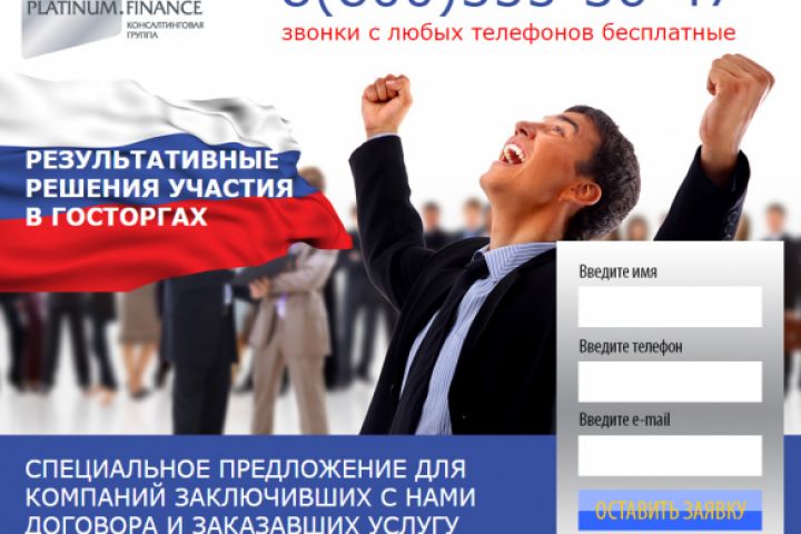 Лэндинг для Platinum Finance, гос. торги