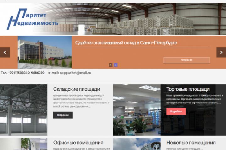 Сайт аренды складских помещений "Паритет-Недвижимость"