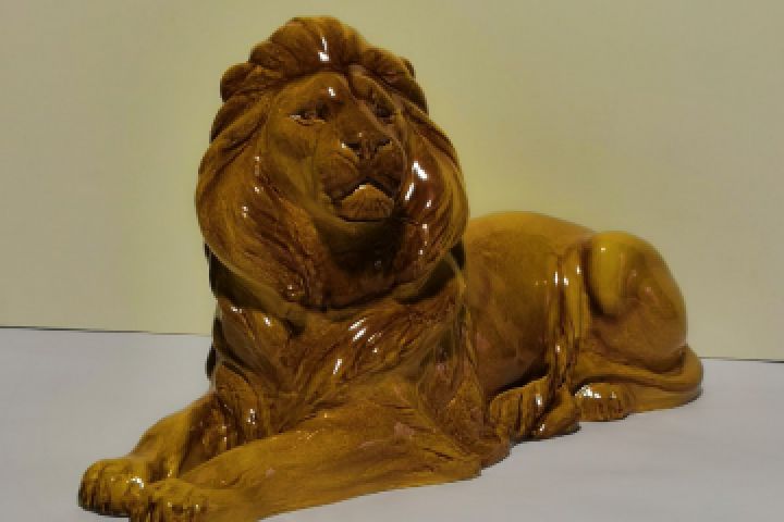 Реставрированный лев . Был в плачевном состоянии рассыпался. После моей реставрации засиял новыми красками . Увлажнила голубой глиной заделала все дырки,прорежены,трещины.И обожгла в печи после немного отполировала. И получился красавец на фото!