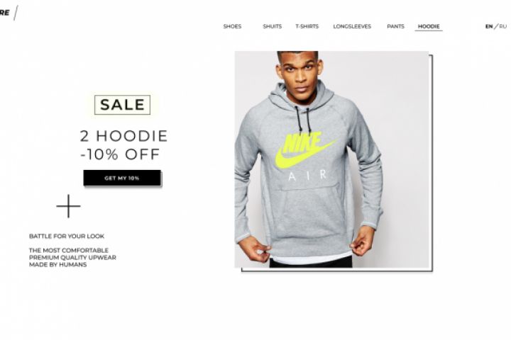 Дизайн сайта для интернет-магазина женской, мужской и детской одежды компании Nike.